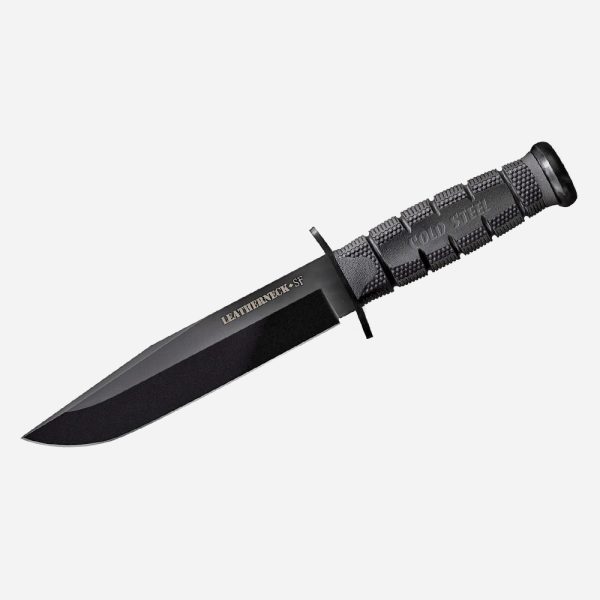 Ножът Cold Steel Leatherneck-SF е подобрена версия на един вече доказал се модели с фиксирано острие на американската фирма Колд Стийл. С гладко фиксирано острие от немска стомана D2 и черно прахово – не рефлектиращо, много издръжливо покритие, удобна и ефективна ръкохватка от Griv-Ex™ & Kray-Ex™. Кобур от синтетика Secure-Ex® Sheath. Full Tang конструкция, Clip-Point, Hollow Ground острие правят този нож много здрав и страхотно остър. Ножът завършва със стоманена капачка, която може да се ползва, като чук.
