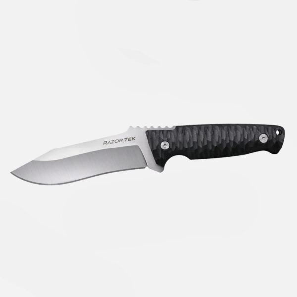 Ножът Cold Steel RAZOR TEK 5″ Blade 4116 Black е следващата стъпка в серията. Извитото острие дава предимствата на по-дълъг режещ ръб, и на рязане при изтегляне или издърпване на острието. Страхотно фиксирано острие със среден размер за обработка на дивеч, Bushcraft, приготвяне на храна, кълцане и нарязване. Комбинирайки формата на острието с изключително ергономична, текстурирана ръкохватка, този нож е готов за следващото ви приключение на открито. Включва Secure-Ex кания.