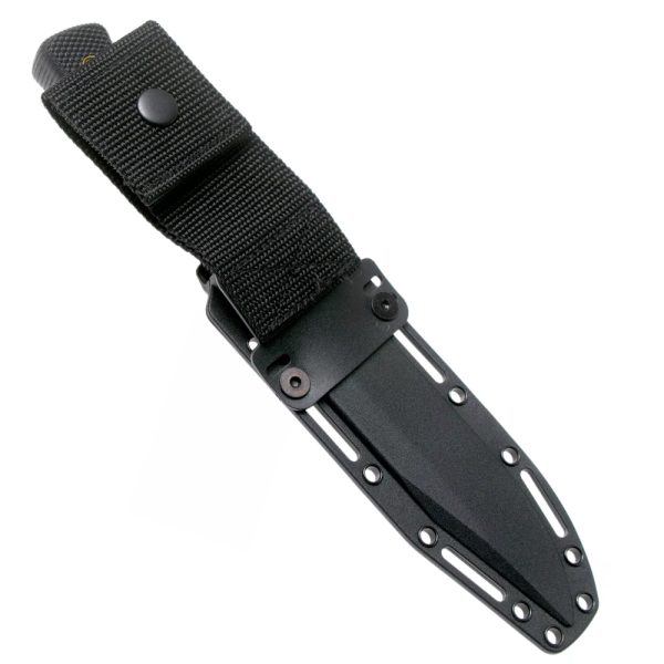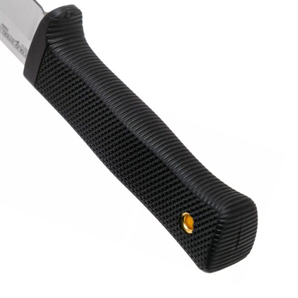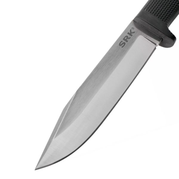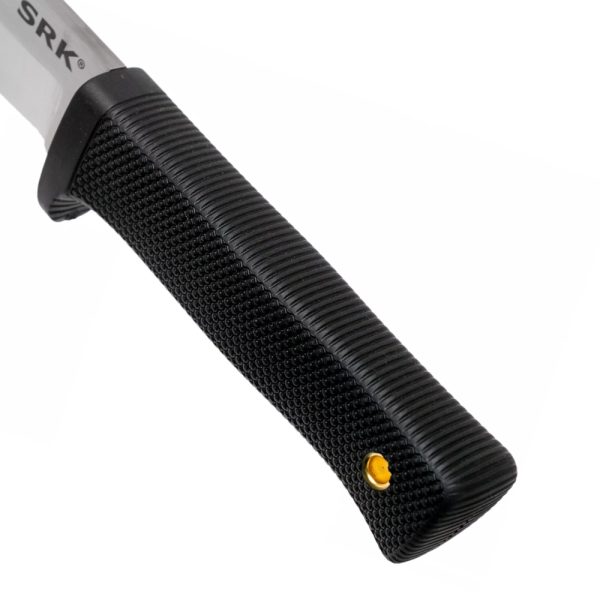 Ножът Cold Steel SRK 3V Kray-Ex Black е солиден и здрав нож с фиксирано острие. SRK означава нож за търсене и спасяване и като такъв този нож за оцеляване никога няма да ви разочарова. Острието е направено от стомана CPM 3V, инструментална стомана, известна с изключителната си здравина. Чупи се много трудно, а също така запазва добре остротата си. CPM 3V не е напълно неръждаема, след употреба нанасяйте капка масло, за да поддържате този нож в отлична форма. Ръкохватката е изработена от Kray-Ex, осигурява добро сцепление, дори при мокри обстоятелства. Солидният Secure-Ex кобур е подсигурен с допълнително закопчаване, за да сте сигурни, че няма да загубите ножа.