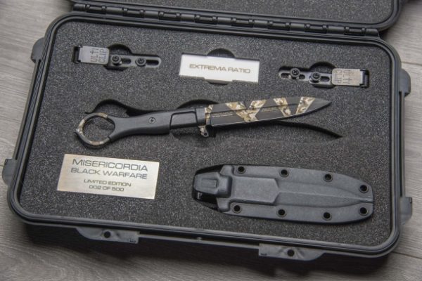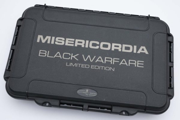 Ножът Extrema Ratio Misericordia Black Warfare е версия в ограничена серия от само 500 броя, която запазва непокътнати всички характеристики на известния модел Misericordia, възприет от 4-ти алпийски парашутен полк, който помогна за разработването и тестването на продукта и го избра заради неговите уникални характеристики, които го правят особено подходящ за битка от засада. Острието е фрезовано от стомана Böhler N690, закалено до 58 HRC за най-добър баланс на задържане на ръба и здравина, е с дължина 118 mm, дебелина 4 mm и има плосък ръб. Теглото на ножа е само 87 грама. Ръкохватката запазва безпогрешния ергономичен профил на Extrema Ratio и е изработена от найлон с пълнеж от фибростъкло, за да осигури абсолютна здравина при всякакви условия, дори и при най-тежките употреби. Отличителният пръстен в долната част на ръкохватката подпомага хващането на ръката, като позволява на войника да направи по-голям и по-твърд удар. Кания Kydex предлага опции за закрепване с щипка за колан, улти-щипка, може да се прикрепи и към M.O.L.L.E. система чрез оплитане на ремъка от паракорд. Misericordia Black Warfare е в комплект със IP67-сертифициран водонепропусклив полипропиленов технически калъф, с клапан за налягане, устойчив на атмосферни влияния, прах и удар.