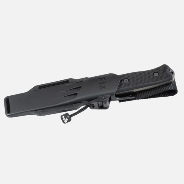 По обичайния ни начин вложихме много енергия в проектирането на безопасна кания за ножа, в която всъщност ножът ще прекарва по-голямата част от времето си. Дизайнът на ножницата определя достъпа до ножа и тук наистина вложихме всичките си усилия, за да получим безопасна кания, която позволява лесен достъп до ножа. Тя има както транспортна ключалка (сгъваемата скоба с ремък), така и работещ предпазен детайл, който позволява на ножа да бъде на място, докато решите да го използвате. Подходът е малко като с колан и презрамки, но ние обичаме да поставяме безопасността на първо място – изгубеният нож е безполезен. Следователно транспортната ключалка ще позволи на ножа да бъде закрепен с наклон нагоре или надолу върху тялото или върху вашето оборудване без никакъв риск. Цялостно: Няма да се изненадаме, ако хората започнат да разпознават X-knife като най-задълбочено обмислената концепция за нож в света, в която не е изрязан нито един ъгъл, нищо не е спестено, за да се постигне най-доброто от гледна точка на ергономията и безопасността. Ножът е остър и здрав, а калъфът е интелигентен и безопасен. И така, какво повече можете да искате? Е, ние създадохме ножа и да изглежда наистина добре!