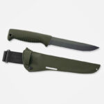 Ножът Peltonen Knives Sissipuukko M95 е много типичен финландски инструмент; вашият универсален помощник в дивата природа и при екстремни условия. Много хора го помнят от армията, а за мнозина той е познат инструмент от служебните им задължения. Ловецът използва Sissipuukko, за да се справи с дивеча, а туристът го използва, за да си помогне при вечерния преход със снегоходки. Дебелото острие на ножа е изработено от въглеродна стомана 80CrV2 – стомана, която често се използва във финландските ножове и е доказано надеждна. Стоманата предлага балансирана комбинация от твърдост и издръжливост. Тя остава остра за дълго време и е лесна за заточване, когато е необходимо. Версията M95 е с дължина на острието 15 сантиметра. ПОКРИТИЕ CERAKOTE: Покритието, предпазващо въглеродната стомана от корозия. То е по-гладко от тефлоновото покритие PTFE и не отразява толкова силно светлината. Покритията Cerakote предлагат интересни цветови варианти и често се избират от тези, които предпочитат цветно оборудване.