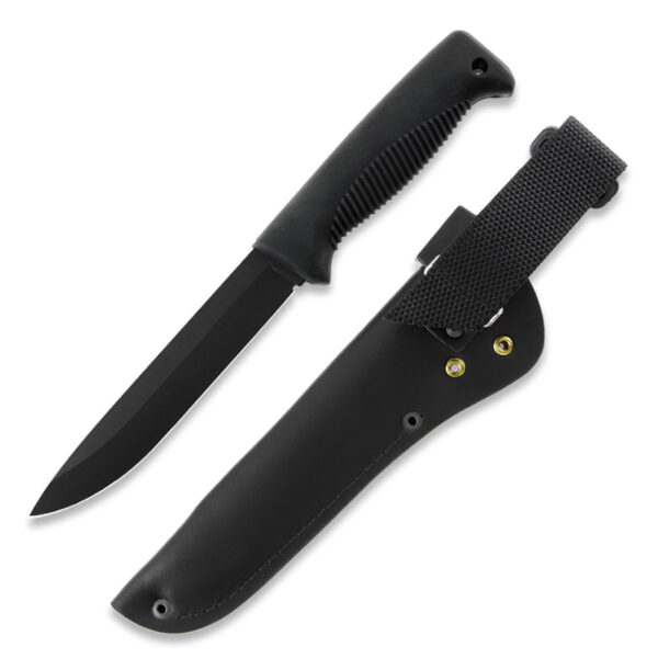 Ножът Peltonen Knives Sissipuukko M95 е много типичен финландски инструмент; вашият универсален помощник в дивата природа и при екстремни условия. Много хора го помнят от армията, а за мнозина той е познат инструмент от служебните им задължения. Ловецът използва Sissipuukko, за да се справи с дивеча, а туристът го използва, за да си помогне при вечерния преход със снегоходки. Дебелото острие на ножа е изработено от въглеродна стомана 80CrV2 – стомана, която често се използва във финландските ножове и е доказано надеждна. Стоманата предлага балансирана комбинация от твърдост и издръжливост. Тя остава остра за дълго време и е лесна за заточване, когато е необходимо. Версията M95 е с дължина на острието 15 сантиметра. Дебелото острие на ножа е изработено от въглеродна стомана с покритие от PTFE. PTFE (тефлон) предпазва иначе податливата на ръжда въглеродна стомана от корозия и намалява триенето и залепването на замърсители. Покритието отговаря и на изискванията за сертифициране на безопасността на храните. Острието може да издържи на малко по-груба употреба и при необходимост лесно се заточва отново.