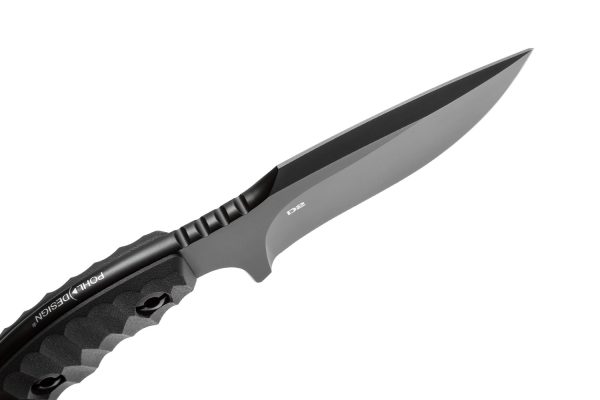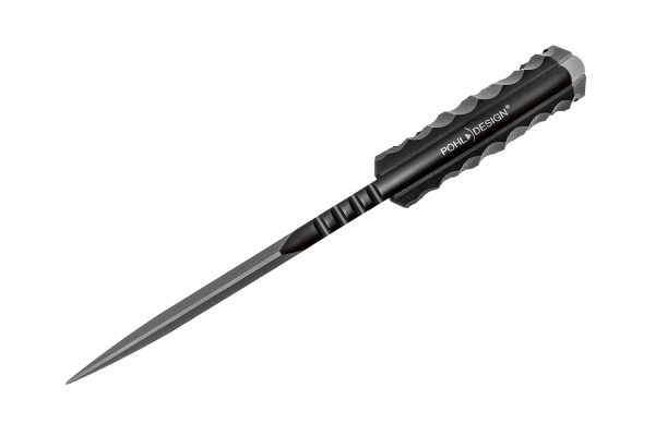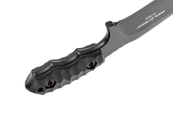 Ножът Pohl Force Compact Two BK D2 е с акцент върху масивното и дълго 86 милиметра класическо острие Spear Point на Compact Two, което е изключително солидна конструкция с дебелина 6 mm. За висока издръжливост на рязане и еластичност на остриетата е избрана добре познатата инструментална стомана D2. TiN Coating покритие създава устойчива на надраскване повърхност и също така повишава устойчивостта на корозия на острието. Намаленият дизайн на дръжката е в основата на компактния размер на ножа. Удобно заобленият връх и проектираните канали за пръсти осигуряват страхотен и сигурен захват, направенa от G-10. Отличителното фрезоване в предната част на дръжката служи като показалец и опорна точка за палеца. Compact Two е оборудван със здрава и висококачествена кания Kydex в черен цвят. Адаптерът за колан Tac-Clip, който може да се монтира в различни позиции, позволява гъвкаво и сигурно носене.