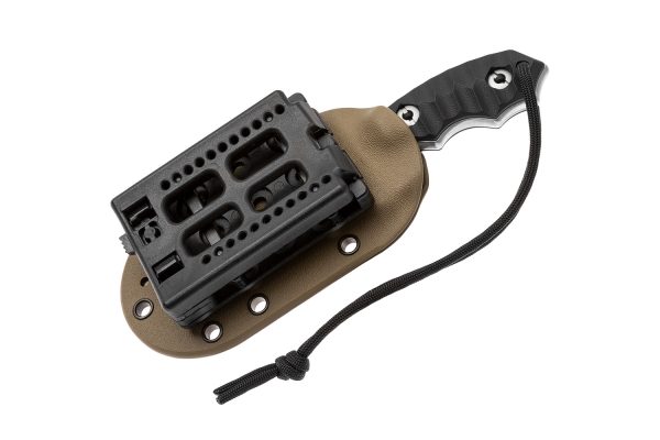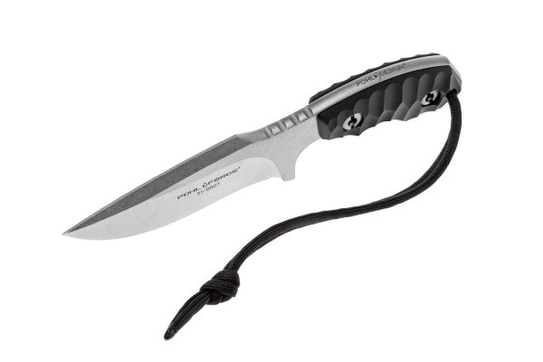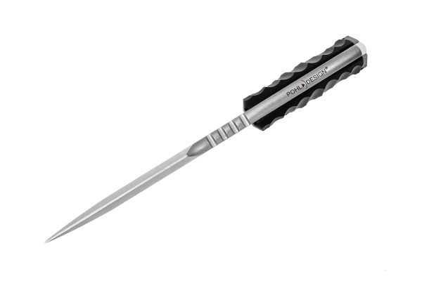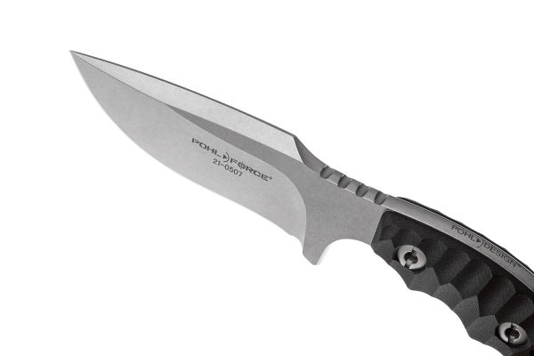 Ножът Pohl Force Compact Two SW D2 е с акцент върху масивното и дълго 86 милиметра класическо острие Spear Point на Compact Two, което е изключително солидна конструкция с дебелина 6 mm. За висока издръжливост на рязане и еластичност на остриетата е избрана добре познатата инструментална стомана D2. Stonewashed покритие създава устойчива на надраскване повърхност и също така повишава устойчивостта на корозия на острието. Намаленият дизайн на дръжката е в основата на компактния размер на ножа. Удобно заобленият връх и проектираните канали за пръсти осигуряват страхотен и сигурен захват, направенa от G-10. Отличителното фрезоване в предната част на дръжката служи като показалец и опорна точка за палеца. Compact Two SW е оборудван със здрава и висококачествена кания Kydex в цвят FDE (Flat Dark Earth). Адаптерът за колан Tac-Clip, който може да се монтира в различни позиции, позволява гъвкаво и сигурно носене.