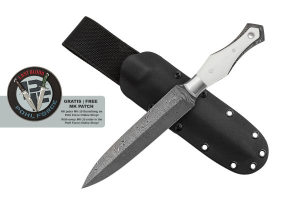 Фиксираният нож Pohl Force MK-10 Last Blood Damascus G10 е проектиран от Българският ножар и дизайнер Стоил Манчев, имащ голямата привилегия да проектира втората класическа кама, използвана някога във филмовата индустрия за последната част на филма „Последна кръв“. MK-10 е уникален с острие от неръждаема дамаска стомана в шарка на големи рози, 59–60 Rockwell осигуряват на острието впечатляваща острота. Манчев умишлено проектира чирените от G10 на ръкохватката да бъдат по-тънки към края, за да разкрие отново вкуса и внушителната и жива структура на Дамаск. MK-10 Last Blood е снабден с изящно направена кания Kydex® с адаптер за носене на колан. За да защити острието от надраскване, вътрешната страна е снабдена със специална материа. Камата се съхранява безопасно в включената найлонова колекционерска торбичка, която може да служи и като подложка за презентация. Моделът е лимитирана серия от 600бр.