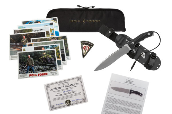Ножът Pohl Force MK-9 Legacy е посрещнат от стотици лоялни фенове на филма First Blood от цял свят, той донесе със себе си прототипа на MK-9 Legacy с черни чирени от G-10 и подходяща кания Kydex®. MK-9 Legacy впечатлява не само с външния си вид, но и с множество добре обмислени функционални елементи. Размерът и външният вид съответстват на легендарния дизайн MK-9 на Dietmar Pohl, но дизайнът замислен като боен нож е трансформиран в нож за оцеляване със страхотно чувство за форма, детайли и функционалност. Най-важните елементи включват задния трион, отвертките на предпазителя за ръката, прорезите в предпазителя за ръка за закрепване на кабели, кухина за прибори за оцеляване вътре в дръжката, ударен елемент в края на дръжката и ключ за отваряне винтовете на дръжката.