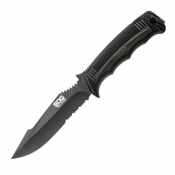 Ножът SOG Seal Strike AUS-8 GRN е най-новият член на семейството с фиксирано острие, SEAL Strike взема всичко, което SOG е научил от годините на внедряване в реалния свят, и го комбинира в един грандиозен нож. Острието е изработено от неръждаема стомана AUS-8, частично назъбено, и е отличен спътник за приключения на открито и под вода. Ергономичната ръкохватка направена GRN и Stainless Steel осигурява здрав и сигурен захват. Бъдете в готовност с напълно способния SEAL Strike.
