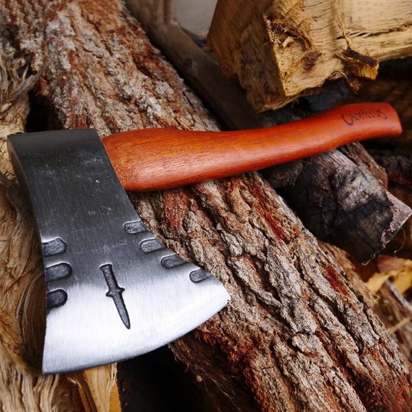 Брадвата Camillus Teca Teak Handle Hatchet 1045 е идеална за цепене на дърва за огрев, малки до средни трупи, клони на малки дървета или цепене на подпалки. Острието е изработено от въглеродна стомана 1045, която дава уникална твърдост. Перфектният баланс и съотношението мощност-тегло увеличават импулса на въртене, за да увеличат максимално производителността на рязане. Ръкохватката е направена от Тиково дърво, като и придава стилен външен вид, с максимална издръжливост, лекото текстурирано покритие, осигурява надежден захват през цялото време, когато имате нужда от нея.