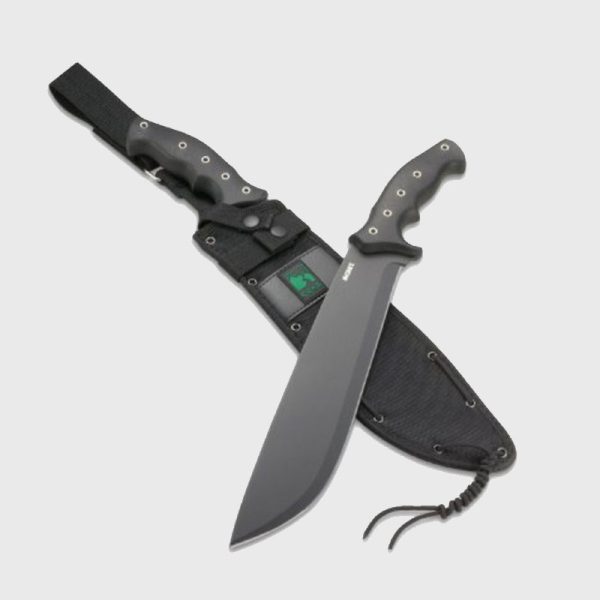Мачетето CRKT CHANCEINHELL MACHETE Carbon Steel е проектирано от Ken Onion да бъде издръжливо, силно и да работи като вол. Този нож е създаден за тежка употреба и е лесен за заточване, острието е от въглеродна стомана има черно прахово покритие, което е издръжливо в екстремни среди. Ръкохватката е ергономична, за да намалява умората на ръцете, разполага с множество дупки за паракорд с които има разнообразни опции за захващане. Мачетето за оцеляване Chanceinhell™има найлонова кания с уникална велкро система за колан, която може да се променя между две позиции, висяща или плътно прилепнала към колана.