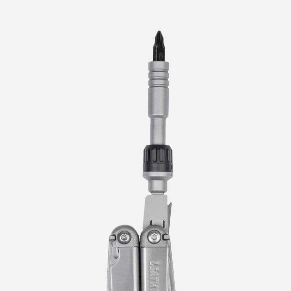 Leatherman RATCHET е перфектен адаптер за бързо и лесно навиване и развиване на винтове и гайки. RATCHET DRIVER е иновативен адаптор с тресчотка, която ви позволява да прилагате повече въртящ момент, без да отделяте бита от винта или гайката. Тресчотката има две посоки на въртене, както и положение, в която е заключена. RATCHET DRIVER е оборудван с магнитен държач за битове, съвместим с плоските битове на LEATHERMAN, но и с всякакви стандартни ¼ ”битове. RATCHET DRIVER може да се постави на всеки мултитул на LEATHERMAN, който има голям държач за битове. Аксесоарът е компактен и може да се носи в канията на вашият мултитул. С допълнителеният адаптор за мултитуловете на Leatherman може да увеличете вашия достъп до недостъпни места с 8 см. В този допълнителен адаптор може да се поставят всички битове на Leatherman, както и шестоъгълните стандартни HEX битове.