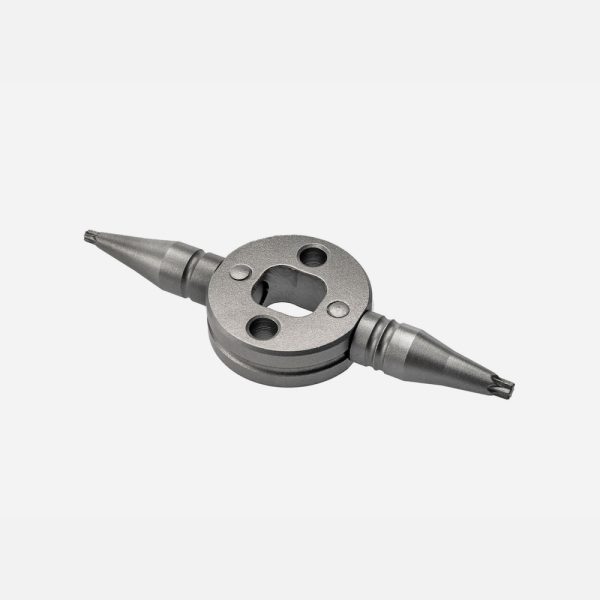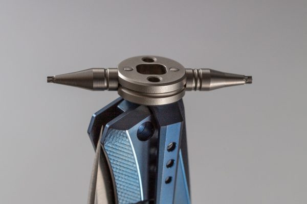 Инструмент LionSteel с два торкс-а – Torx T6 & Torx T8 и инструмент специално проектиран за премахване на шипа за трошене на стъкла от волфрамов карбид 1/4 „. Материал: 420С.
