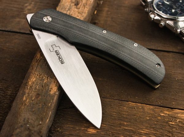 Едва ли някой друг джобен нож Boker Plus е толкова търсен през последните години и се появява в толкова много вариации като Exskelibur от Mike Skellern. Производителят на ножове от Южна Африка създаде една от най-успешните и популярни серии от гамата Boker Plus със своя дизайн. Тази версия се отличава с бронзово анодизиран титанов лайнер и кобалтово легирана първокласна стомана VG-10. Ножът е заключен от класически лайнер. Чирените на дръжката от G10 не се плъзгат дори при мокри условия, закрепени в ръката.