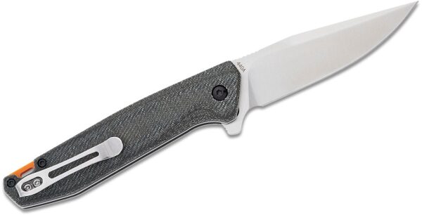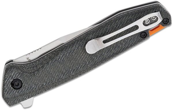 Ножът Boker Magnum Border Forest Folder 440A Micarta е удобен малък флипер с бързо отваряне, който няма да наруши бюджета. Острието има остър пробивен връх и втори ръб в горната част, които му придават елегантен профил. Острието от неръждаема стомана 440A се разгъва чрез флипер с плавно действие и задоволително заключване. Заключването с бутон го държи здраво отворено и все пак прави лесно затварянето. Чирените са изработени от платнена микарта върху подложки от неръждаема стомана, които имат лека текстура позволяваща здрав захват, дори при мокри условия. Задната част служи за отвор за ремък, а яркооранжевият цвят го прави лесен за забелязване, ако го изпуснете. Реверсивната джобна щипка от неръждаема стомана за дълбоко носене спомага за това Border Forest да бъде отличен избор за EDC.