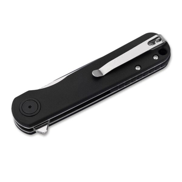 Ножът Boker Magnum Braddock Black 440B G10 е елегантен и опростен джобен нож на добра цена. Ергономичната дръжка от черен G10 с карбонова инкрустация по плоската ос на винта на пантата превръща Braddock в уверено one-man show в широкия свят на джобните ножове. С дължина на острието си от 8,5 см този нож е идеален за ежедневно носене. Когато е затворен, дължината му е само 11 см, а теглото му е 100 г. Отварянето на джобния нож е изключително бързо благодарение на флипера, който позволява работа с една ръка. Boker Magnum Braddock е оборудван със сачмени лагери, които правят отварянето и затварянето приятно и плавно. Веднъж отворен, заключващият механизъм гарантира, че ножът е заключен и няма да се затвори случайно.