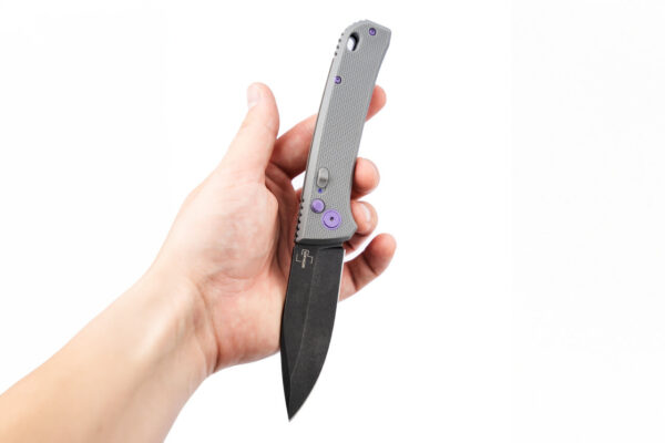 Ножът Böker Plus FRND Grey D2 G10 Grivory се освобождава от ежедневната рутина и се превръща в различен EDC нож с компактна конструкция. Острието с капковиден връх е изработено от стомана D2, отваря се с бутон и има опушено черно стоунуош покритие, благодарение на което малките следи от употреба почти изчезват дори след усилена употреба. Здравата бутонна ключалка с допълнителен плъзгач подсигурява двойно острието по време на употреба и значително намалява риска от затваряне по време на употреба. Случайното отваряне в джоба на панталона също е в миналото благодарение на предпазната ключалка. Текстурираните чирени на дръжката от Grivory осигуряват здрав захват дори при мокри условия и подчертават лекотата на джобното ножче. Декоративните акценти се поставят от анодизираните винтове и винта за оста на острието с лилав цвят. Доставя се с отвор за каишка, телена щипка и висококачествен найлонов калъф.