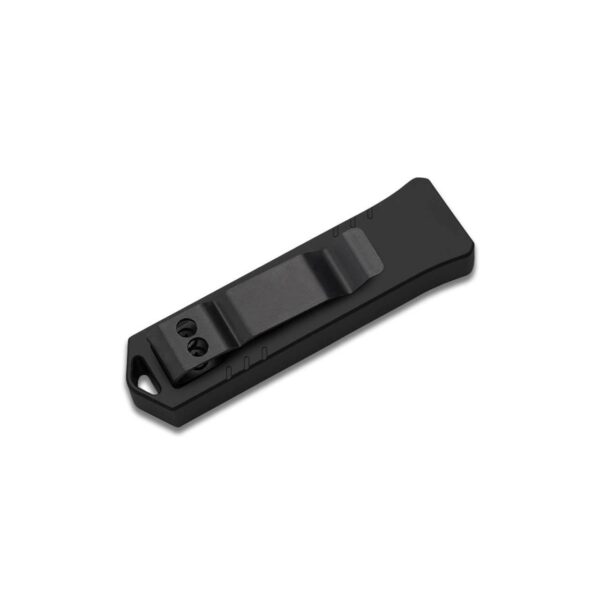 Ножът Boker Plus USB OTF 2.0 D2 Aluminum е абсолютно удобен автоматичен нож, който силно напомня на характерния дизайн на обикновените USB памети. Ножът вече има плосък плъзгач отпред на дръжката, който позволява на острието с клипс, изработено от стомана D2, да изскочи от дръжката бързо като стрела и да изчезне при повторно натискане. Благодарение на практичната работа с една ръка, малките ежедневни задачи по рязане могат да се свършат за нула време. Здравото черно покритие „stonewash“ на острието хармонира перфектно с дръжката, изработена от CNC фрезован алуминий 6061-T6. Благодарение на отвора за връзка, ножът може идеално да се закрепи и към ключодържател, докато широката щипка с наклон надолу (r) позволява ножът да се носи дискретно в джоб на панталон. С класическа черна дръжка.