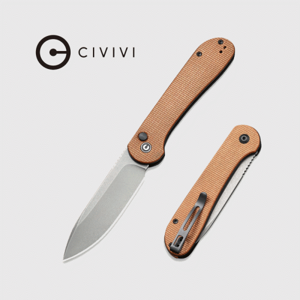 Knife Civivi Elementum 14C28N Button Lock Brown Micarta
