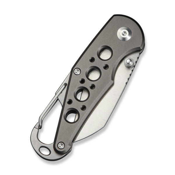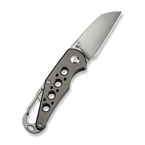 Ножът CIVIVI Pragma Nitro-V Aluminum въплъщава практичен подход към многофункционален инструмент EDC. Макар че много от нас рядко се нуждаят от водач, второ острие, ножица или отварачка за консерви, надеждната отварачка за бутилки често се оказва незаменима. Разбирайки това, Pragma елиминира ненужните функции и се фокусира върху това, което наистина има значение. Вместо типичната джобна щипка, която някои смятат за тромава, Pragma предлага универсална щипка за карабинер в задния си край. Този карабинер не само замества джобната щипка, но също така служи като отварачка за бутилки, което позволява лесно прикрепване към чанта, портмоне, колан или ключодържател. Допълнен от здравото острие Wharncliffe, Pragma се откроява като универсален нож, който се отличава с висока производителност. Това е инструмент, който с удоволствие ще имате под ръка.