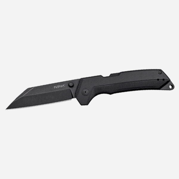 Ножът Cold Steel KARVE е средно голям тактически джобен нож от Cold Steel с красива форма на острието Seax. Karve е изработен от здрав и издръжлив материал, отваря се лесно благодарение на шиповете за палеца и е оборудван с надеждния заключващ механизъм Atlas-Lock на Cold Steel. Според Cold Steel това е най-здравото заключване в историята! Заключването Atlas Lock работи със заключваща щанга в гръбнака на дръжката. Когато се отвори, с помощта на пружина тя се избутва в изрез в острието. Блокиращата щанга се плъзга по два щифта, сред които и стоп-щифтът, който поема силата, приложена към механизма. Интелигентен механизъм, който гарантира, че ключалката е правилно обезопасена при отваряне! Лесно отключвате ножа, като „издърпате назад“ заключващата планка в гръбнака на дръжката. Благодарение на симетричния си дизайн ключалката Atlas Lock е чудесна за използване както от лява, така и от дясна ръка.