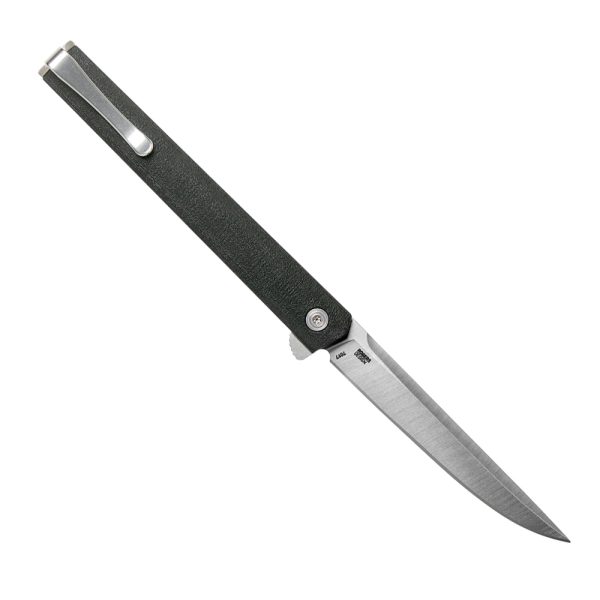 Сгъваемият нож CEO FLIPPER AUS 8 FRN е тънък и фин джентълменски нож, проектиран от Ричард Роджърс, с нисък профил, което го прави идеален за ежедневно носене. Тънкото острие, изработено от AUS 8 висококачествена стомана е не само чудесно за деликатно рязане, но може да извършва ежедневните задачи. Здравата ръкохватка, изработена от олекотен FRN, е снабдена с реверсивен клипс, който позволява да носите ножа в джоба си незабележимо. CRKT CEO се отваря с палец или флипер, при отваряне стоманената ключалка Liner lock гарантира, че пръстите ви са в безопасност.