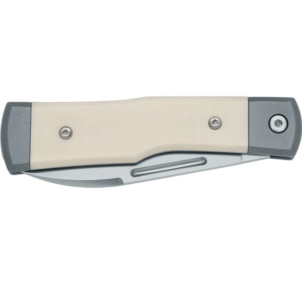 Острието на джобния ножът Fox Knives Gunstock M390 Micarta, titanium е изработено от Böhler M390. Това е първокласна австрийска стомана, която е изключително популярна за джобни ножове, тъй като M390 остава остра за невероятно дълго време. Освен това тя е неръждаема. Това я прави отличен избор за джобен нож, който да носите със себе си всеки ден. Тъй като M390 е невероятно твърда, препоръчваме да заточвате този джобен нож с диамантени или керамични заточващи камъни или със система за заточване, която използва тези камъни. Острието на този нож е с подобрено „сатенено покритие“. Това е елегантно и изискано покритие, което е много популярно.