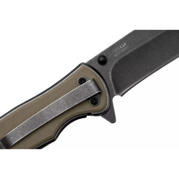 Ножът Kershaw Bevy 8Cr13MoV G10 е здрав джобен нож, който можете да носите със себе си всеки ден. Асистираното отваряне веднага се откроява, когато отворите острието. Докато се отваря с флипер или палец, острието е подпомогнато от пружина. В резултат на това Bevy се отваря със светкавична скорост. Чудесно за EDC употреба! Носете го със себе си и ще откриете, че ви е много полезен. От приготвянето на сандвич до отварянето на пакет. Острието е изработено от 8Cr13MoV-стомана. Единственото, което трябва да знаете, е, че това е неръждаема стомана, която остава остра доста дълго време и че също така лесно можете да я наточите сами, ако с времето загуби част от остротата си. Когато е отворен, Kershaw Bevy се заключва със солидна вътрешна ключалка. Дръжката е изработена от неръждаема стомана с красиви чирени от G10. Този материал е съставен от влакна от платно и синтетична смола. Предлага достатъчно добър захват и се усеща чудесно в ръката.