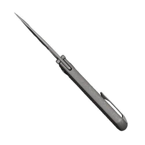 Ножът Kunwu&MC Knife Excalibur Stonewashed VANAX Titanium е първокласен сгъваем нож в пълен размер, създаден за производителност и прецизност. С острие с дължина 91мм, изработено от ултра-устойчива на корозия стомана VANAX (HRC 60–61), той осигурява изключително задържане на острието с чисто покритие „stonewashed“ за здрав, но изискан вид. Титановата дръжка е контурирана за комфорт, с текстура „stonewashed“, която допълва перфектно острието. Въпреки солидното си усещане, Excalibur остава пъргав в ръка, тежайки 5,89 унции (175 грама). Завършен с елегантна 3D титаниева щипка, този нож е идеален за тези, които искат надежден EDC, който е едновременно смел и красиво проектиран.
