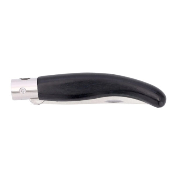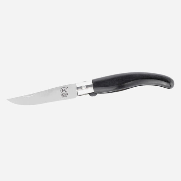 Ножът MAIN Knives Spanish line се характеризира с тънкия си силует на острието и дръжката и е изключителен избор за пътешественици и туристи. Вдъхновени от традиционните испански остриета наваха, тези ножове предлагат забележителна гъвкавост за ежедневна употреба. Благодарение на заострения си връх, ножът притежава превъзходни режещи и проникващи способности. Освен това, контурираната и изтънена дръжка осигурява удобен захват. Безопасността по време на употреба е гарантирана от механизма за обратно заключване на острието. Този нож се отваря плавно с две ръце, използвайки вдлъбнатината от нокътя в острието. Той разполага с надежден заключващ механизъм, предназначен да предотврати случайно затваряне – един от най-популярните видове, срещани в сгъваемите ножове, известен със своята ефективност и безопасност. Разположен директно в дървената дръжка, този заключващ механизъм се задейства автоматично, когато острието е разгънато.