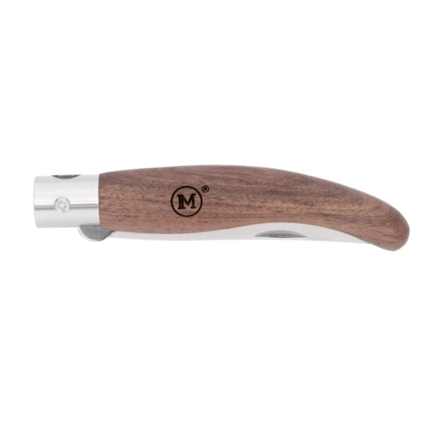 Ножът MAIN Knives Spanish line се характеризира с тънкия си силует на острието и дръжката и е изключителен избор за пътешественици и туристи. Вдъхновени от традиционните испански остриета наваха, тези ножове предлагат забележителна гъвкавост за ежедневна употреба. Благодарение на заострения си връх, ножът притежава превъзходни режещи и проникващи способности. Освен това, контурираната и изтънена дръжка осигурява удобен захват. Безопасността по време на употреба е гарантирана от механизма за обратно заключване на острието. Този нож се отваря плавно с две ръце, използвайки вдлъбнатината от нокътя в острието. Той разполага с надежден заключващ механизъм, предназначен да предотврати случайно затваряне – един от най-популярните видове, срещани в сгъваемите ножове, известен със своята ефективност и безопасност. Разположен директно в дървената дръжка, този заключващ механизъм се задейства автоматично, когато острието е разгънато.