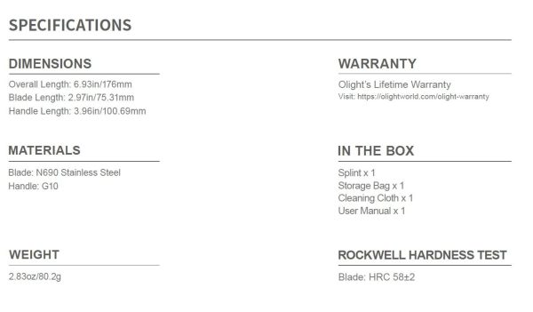 Ножът Oknife Splint N690 е солиден, компактен сгъваем нож, който може да използвате всеки ден. Дължината му е 100.69 мм, когато е сгънат и е снабден с щипка за джоб за дълбоко носене. Острието Clip Point от стомана N690,с пълно шлифоване, чудесно за пробиване и рязане. Острието закалено на 58-60HRC, за да се осигури дълготраен ряз. Здравата дръжка G10 е ергономично обработена и с идеална текстура за удобен и здрав захват. Вътре в дръжката има здрава ключалка, работеща система със сачмени лагери с ниско триене, което позволява на потребителите лесно да отварят и заключват острието с флипера или отвора за палеца. Компактен и здрав, Splint еджобното ножче за всекидневна употреба.
