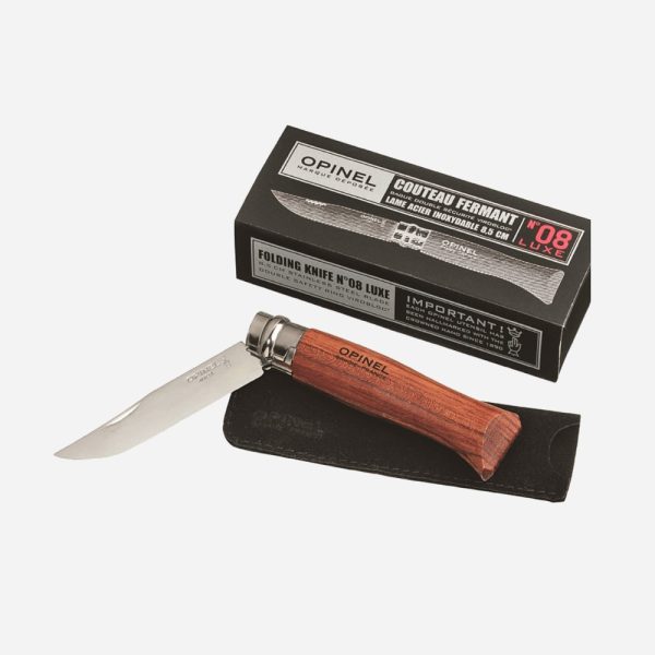 Ножът Opinel Les Effiles No 8 е производство на Френската фирма Opinel, която е със 120 годишна история и се е превърнала в символ на френската култура и традиции. Първият Оpinel е създаден през 1890 г. от Жозеф Опинел, тогава той е на 18 години и работи във фамилната работилница за изработка на сечива. Ножът бързо спечелил популярност сред местните фермери, скотовъдци и лозари със своята лекота и здравина. Тази популярност скоро напуснала пределите на провинция Савой, а в днешно време и на Франция. Този модел Opinel No 8 е с острие от полирана неръждаема стомана 8.5см, дръжката му е изработена от африканско дърво бубинга. Ножът разполага с Viroblock- система за заключване на острието в отворено и в сгънато положение с цел безопасност при употреба или съхранение.