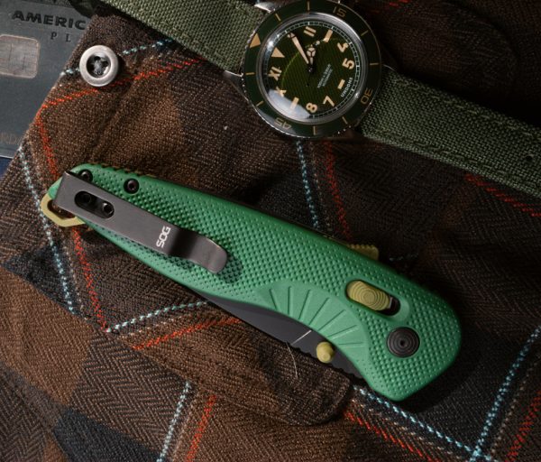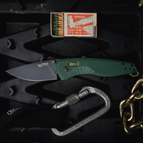 Създаден за военни и правоохранителни органи, SOG Aegis AT Forest&Moss е специално изработен сгъваем нож с острие от криогенно закалена стомана D2. Ръкохватката GRN с лайнери от неръждаема стомана осигурява стабилно усещане и баланс. XR Lock не само осигурява безпроблемна работа при отваряне и затваряне с една ръка, но е и една от най сигурните заключващи системи. Ножът е със реверсивен клипс за ляво или дясно носене.