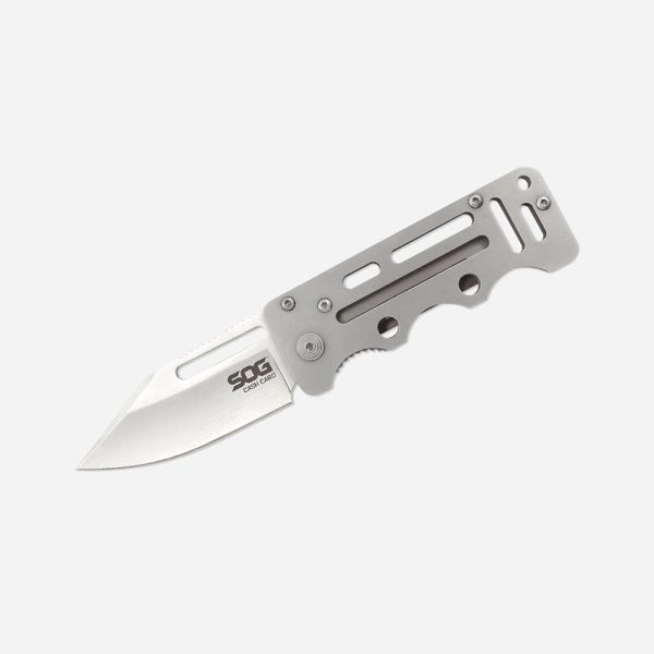 SOG Cash Card е малък нож за всекидневно носене. Той може да се похвали с пълмноценно острие в тънък профил, който лесно се скрива във всеки джоб. Прикрепете го към вътрешността на джоба си или го използвайте като държач за банкноти или карти. Благодарение на металната конструкция, Cash Card може да издържи дълги години. Скелетната структура запазва минимално ниско теглото дори със солидния си механизъм за заключване и 7см острие. Въпреки малкия размер, Cash Card може да ви даде максимална полезност като джобен нож.