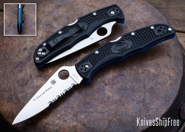 Ножът Spyderco Endura 4 Lightweight Thin Blue Line „Тънката синя линия“ е символичен знак към ролята на правоприлагащите органи като бариера, която не позволява на обществото да потъне в насилствен хаос. За да почете службата и саможертвата на полицаите, пожарникарите Spyderco създаде серия „Thin Blue Line“, която представя този уникален Endura 4 Lightweight. Острие от неръждаема стомана VG-10 Full Flat със серетация придава екстремната режеща сила. Лазерно гравиран с мотото „Да служи и защитава“. Дръжката на този нож е от FRN в черно, подчертано от ярко синя подложка. Част от всички продажби на тези ножове ще бъдат дарени на фондация Tunnel to Towers, която почита жертвата на пожарникаря Стивън Силър, който е дал живота си, за да спаси другите на 11 септември 2001 г.