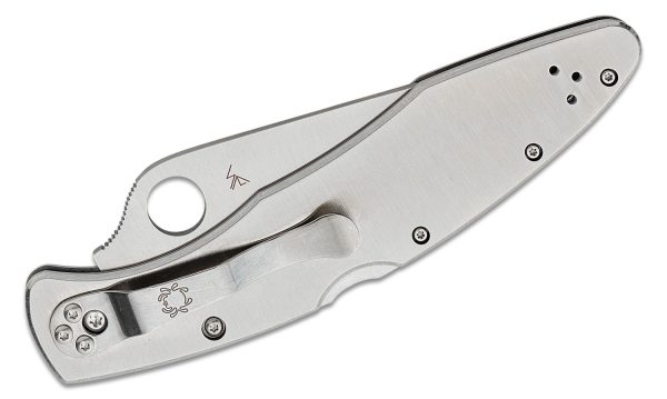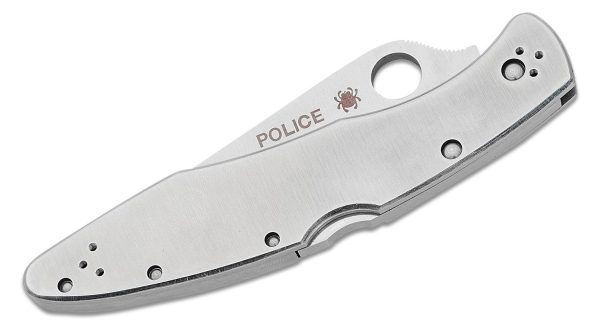 Ножът Spyderco POLICE MODEL STAINLESS VG-10 Stainless Steel е полицейският модел на Spyderco и е разработен в началото на 80-те години на миналия век в отговор на искания от служители на правоприлагащите органи, които искали тънък, лесен за пренасяне фолдър, способен да се справи като фиксиран нож. Резултатът бил Police Model – един от най-издръжливите и емблематични сгъваеми ножове, произвеждани някога. Класическата версия на модела Police разполага със сатенирана дръжка от неръждаема стомана със скосени ръбове за максимален комфорт по време на употреба. Тази конструкция на дръжката осигурява значителна тежест и солидна основа за здравия механизъм за заключване на гърба на ножа, който включва Boye Dent за предотвратяване на неволно освобождаване на ключалката по време на употреба. Неговото острие е от неръждаемата стомана VG-10 със скосена част на гърба (незаточена фаска) за остра геометрия на върха. Предлага се с PlainEdge™, SpyderEdge™ или CombinationEdge™, острието на полицейския модел включва и нашата запазена марка Round Hole™ за бързо, надеждно отваряне с една ръка. Щипка за носене с четири позиции допълва пакета.