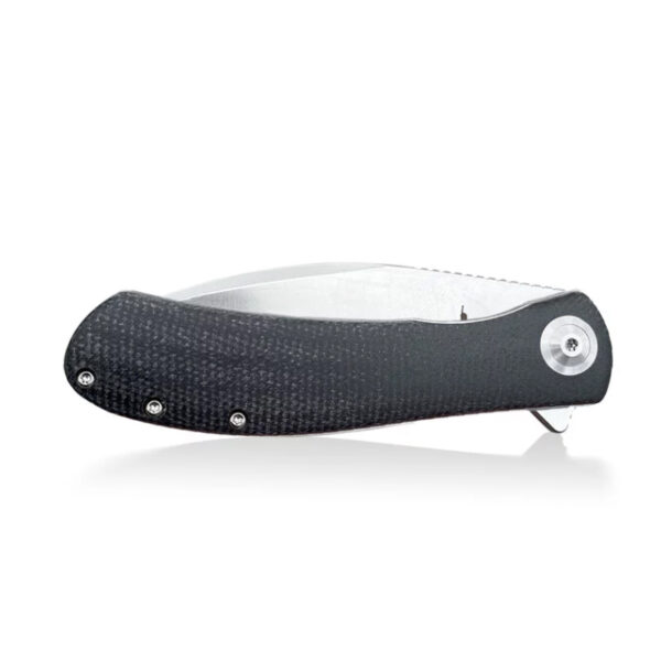 - Дръжка: Ръкохватка от черна микарта, вложки от неръждаема стомана и задна част, клипс Deep Carry / Tip-Up