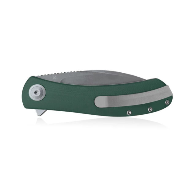 - Дръжка: Ръкохватка от зелен G10, вложки от неръждаема стомана и задна част, клипс Deep Carry / Tip-Up