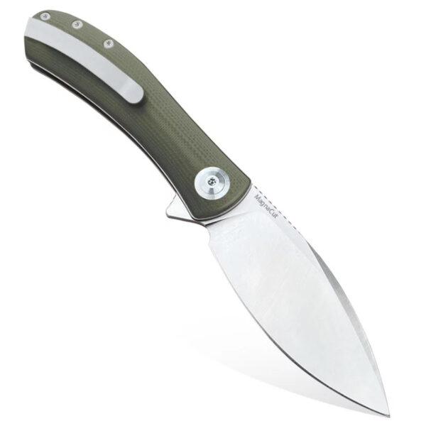 Ножът Trollsky Knives Mandu XL MagnaCut OD Green G10 е сгъваемата версия на популярния дизайн с фиксирано острие на Trollsky. Той е снабден с механизъм Liner Lock и клипс Deep Carry за дискретно носене в джоба. Широкото острие във формата на лист и удобната дръжка правят този нож идеален за ежедневна употреба. В сравнение с Mandu с двоен ограничител, XL версията е по-голяма (8,46„ срещу 7,08“), като предлага повече мощ и сила за ежедневни задачи като отваряне на пакети, приготвяне на закуски или дори използване на открито.