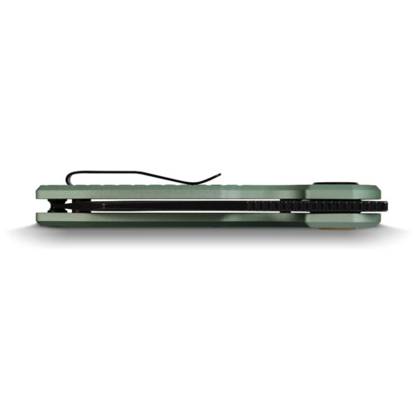 Ножът Vosteed Ankylo Vanchor Lock 154CM Aluminum е първият ни дизайн на нож с иновативния заключващ механизъм Vanchor. Тази система „2 в 1“ съчетава шарнир и бутон, което позволява безпроблемно затваряне на ножа по вълшебен начин. Заключването Vanchor интегрира магнитен конектор и здрава заключваща пластина, които работят заедно, за да осигурят едновременно стабилност и укрепване. Освен това дизайнът на ключалката гарантира, че шарнирът/бутонът остава вдлъбнат, независимо от задействането на ключалката, за безпроблемна работа и елегантен външен вид. Ankylo е с 81 мм. острие 154CM. Стоманата 154CM е позната с добре балансирания си състав, който гарантира, че острието запазва своята производителност и остър ръб за продължителен период от време, висока производителност и ниска поддръжка – най-доброто от двата свята! Дръжките са изработени от алуминий 6061 от аерокосмически клас. Предлагат чудесно съотношение между здравина и тегло. Направихме множество тестове, за да намерим най-удобната за вас форма на дръжката. За да издигнем ергономичността на следващото ниво, всички ъгли на дръжката са двойно скосени с CNC. Реверсивният клипс позволява на десничарите и левичарите да ползват ножа. Той се предлага и с пластина, която може да покрие страната останала без клипс. Тази допълнителна функция подобрява естетиката и действа като защитна бариера срещу мръсотия, прах или други замърсявания. Накратко, обичаме ножовете и обичаме да ги правим за вас. След почти 27 месеца упорита работа Ankylo най-накрая е готов да се рее на хоризонта на ножовете! Нашето най-искрено желание е патентованата ни V-образна котвена ключалка на Ankylo да ви донесе радост и да предизвика широка усмивка на лицето ви.