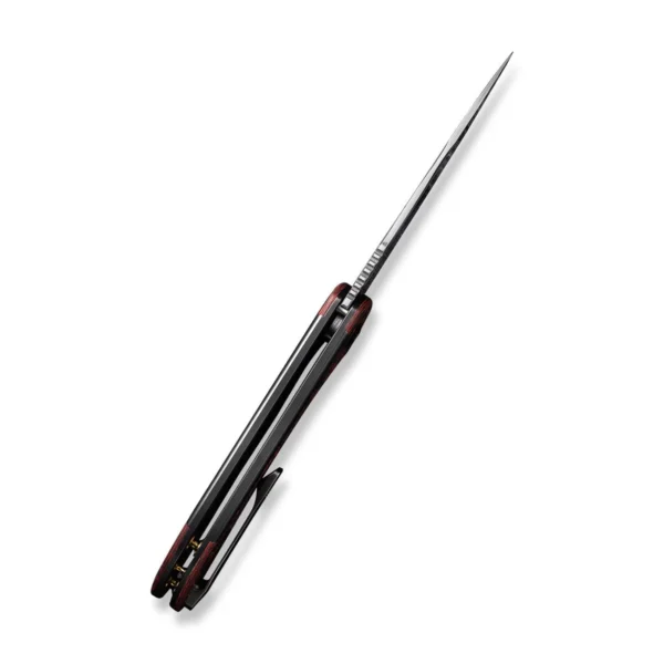 Ножът WE Knife Equivik Damascus Titanium Grey & Lava Flow Carbon е стилен джобен нож, проектиран от експертите на WE Knife. С Equivik те демонстрират артистичността си в производствената работа и тя не остава незабелязана! През 2023 г. Equivik печели наградите „Най-добър фабричен нож“ и „Най-добър фабричен внос“ на изложението Blade Show West, голямо изложение за ножове в САЩ. За тази версия на ножа WE е използван зашеметяващ дамастел. Това е първокласна и неръждаема дамаска стомана с великолепна шарка. Формата на острието с капковиден връх прави този нож отличен за пробиване и отваряне на пакети. Отварянето и затварянето на острието е лесно благодарение на керамичните сачмени лагери и перфектно настроения флипер. Острието се държи на място с фреймлок. Дръжката на WE Knife Equivik е изработена от едно парче титан 6AL4V. Това означава, че ножът е лек и изключително здрав. Дръжката е снабдена и със зашеметяваща инкрустация Lava FLow Fat Carbon. Инкрустацията подчертава формата на дръжката и служи като разделител между фреймлока и титановата рамка на дръжката.