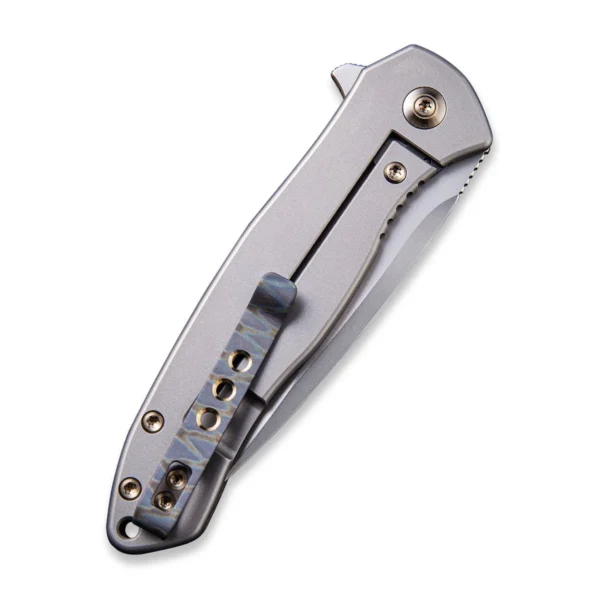 Ножът WE Knife Kitefin CPM S35VN Titanium Shredded Carbon е точно този нож, който искате да носите редовно в джоба си, тъй като е абсолютно идеален за ежедневно носене. Съотношението между размера и теглото му е равностойно на това на Kershaw Leek… един от най-добрите EDC ножове на пазара, а действието му е доста по-добро. Има отлична ергономичност за размера си, а тънкият профил го прави лесен за носене в джоба през целия ден. Дългото острие с капковиден връх е снабдено с рампа за палеца и клин за пръстите за фина работа с детайлите. Заключващата страна има сменяема вложка за lockbar за дълготрайност и джобна щипка в стил байонет за дълбоко носене. Ножът е фантастичен във всяко едно отношение и определено заслужава да го разгледате като следваща покупка.