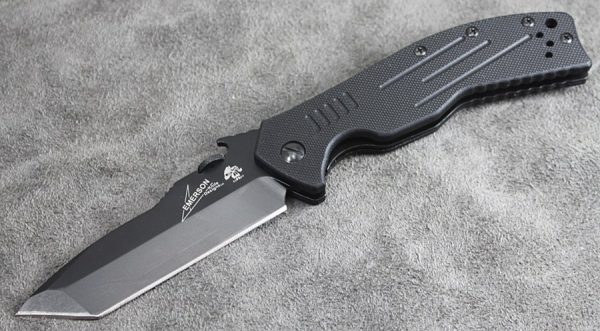 Сгъваемият нож Kershaw Emerson CQC 8K е продукт на съвместната дейност на две от най-големите фирми в този бранш. Проектиран от Ърни Емерсон, и изработен от Kershaw моделът CQC 8K е сгъваем нож с острие изработено от 8Cr14MoV стомана с черно матово покритие и ръкохватка от G-10 в черен цвят. Отличителна черта Kershaw Emerson CQC 8K е изработката на острието – типично в стила на ножовете Emerson, което е едностранно заточено. Друго важно нещо за този нож е специално патентованата Wave система за скоростно отваряне на острието на секундата, когато го носите в джоб. Kershaw Emerson CQC 8K разполага с Liner Lock заключване и реверсивен клипс за ваше удобство. Прекрасен нож предназначен за ежедневно носене.