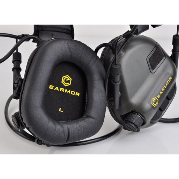 Активните антифони Earmor M32 Plus са нова ъпгрейдната версия с нова велкро лента за глава, кевларени кабели, нов дизайн за бърза смяна на адаптерите и гел възглавнички! Тактически активни антифони от най-висок клас, предназначени за специалните части, ловци и стрелкови спортове. Усилват звуците от околната среда (8 нива на усилване) . Снабдени са с по два стерео микрофона във всяка слушалка с HD звук. По този начин стрелеца безпогрешно разпознава посоката (360 градуса), от която идва звука от околната среда. Изстрел или шум над 82dB, бива автоматично заглушен, при което не биват заглушавани останалите околни звуци! Захранването е от 2 броя алкални батерии 1,5V ААА, (не са в комплект), които осигуряват около 350 часа работа на антифоните. Предвидено е и автоматично изключване след 4 часа работа. Ниво на редуциране на шума NRR22. Пет електронно настроени нива на усилване на околният звук.Разпознаване на глас спрямо околния шум. Сигнал при включване и изключване. Водоустойчиви по IPX 5 стандарта. Ергономичен дизайн. Вграден NATO Military Standard 7.0 жак за PTT. В комплект с микрофон, който може да се поставя от лявата или дясната страна на антифоните по желание на стрелеца. Допълнително може да се закупи PTT устройство за най-популярните видове радиостанции.