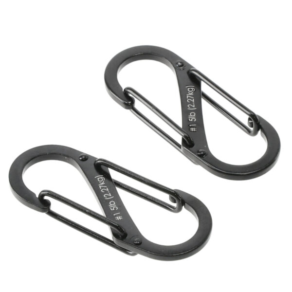- Комплектът от два карабинера S-Biner в черно е изработен от здрава и устойчива на атмосферни влияния неръждаема стомана и разполага с две двустранни закопчалки, които са изключително лесни за работа.