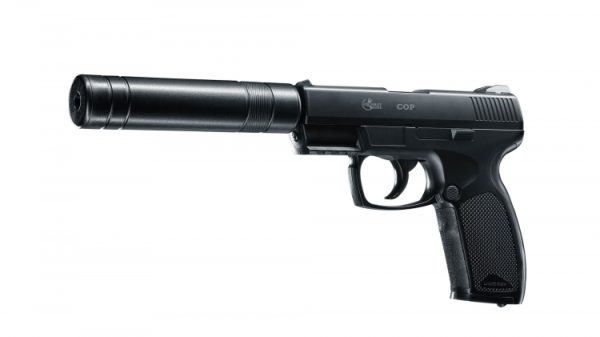 Airsoft pistol Combat Zone COP SK e the best airsoft gun for those who demand power and precision. With its sleek black design, this pistol is sure to attract attention on the battlefield. Powered by CO2, the Combat Zone COP SK NBB delivers a powerful shot with every pull of the trigger. Its no-blowback design ensures maximum accuracy and efficiency, making it the perfect choice for both beginners and experienced airsoft players. The pistol features a 15-round magazine, allowing for quick and easy reloads during intense battles. Its ergonomic grip and lightweight design make it comfortable to grip and easy to maneuver, giving you the edge you need to outsmart your opponents. Whether you're a seasoned airsoft veteran or just starting out, the Combat Zone COP SK NBB CO2 - Black from Umarex is the perfect choice for your next skirmish. Complete with a silencer that can be removed.