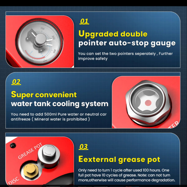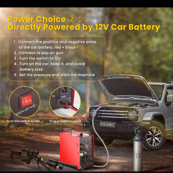 Компресорът за въздушно оръжие GAOROBAM GX PUMP E-CS4-I има нов, подобрен 350W мотор и използва четиристепенна технология за компресия. Той е много стабилен при работа и е много тих, само 70db. Максимално пълнене 5800Psi/40Mpa. Забележка: Първо проверете максималното безопасно налягане на вашата газова бутилка, не пренадувайте, в противен случай това ще причини проблеми с безопасността. Същевременно е оборудван с манометър с двойна стрелка и двустепенна настройка на налягането за автоматично спиране, което е по-сигурно. Резервоар за вода и резервоар за грес са проектирани в горната част на компресора. Отличното охлаждане може да постигне 5 часа непрекъсната работа и може да напълни максимален газова бутилка от 6,8 литра. Забележка: За първа употреба трябва да се напълни с 300ml антифриз (чиста вода не се препоръчва). Забележка: 1) Не забравяйте да добавите неутрален антифриз, ако замръзне във вашия район. 2): Не завъртайте копчето за грес, докато не изминат 6 часа употреба, в противен случай това ще доведе до лоша производителност. след това го завъртете с едно завъртане. 15% по-бърза скорост на пълнене: Пълненето на резервоар от 0,5 л от 3000 Psi до 4500 Psi отнема само 4-5 минути. Пълненето на резервоар от 0,5 л от 0 до 4500 Psi отнема само 14-16 минути. Не препоръчвайте пълнене на големи резервоари, например над 6 л, тъй като ще отнеме много време. Вграден конвертор от 220 V към 12 V DC: В сравнение с GX E-CS4, CS4-I има вграден конвертор за по-голямо удобство. Можете да използвате автомобилен акумулатор или домашен контакт като захранване. Машината е оборудвана и с вграден сепаратор масло-вода, който никога не се нуждае от подмяна, така че не е необходимо да купувате други външни сепаратори масло-вода. Моля, прочетете внимателно ръководството за потребителя, преди да включите компресора. Всички помпи GX се предлагат с 12-месечна гаранция и доживотна технологична поддръжка. Размер на продукта: 11,8*6,1*12,4 инча, тегло: 29 фунта (11,8*6,1*12,4 инча),