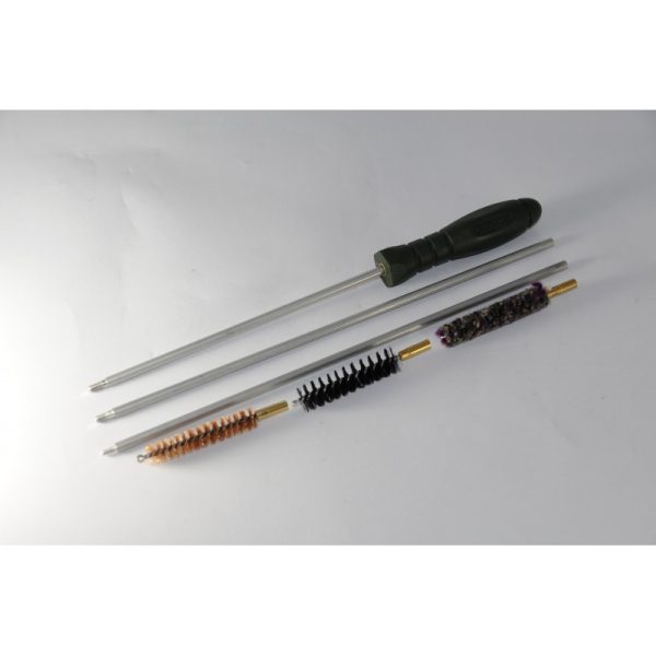 Алуминиев шомпол за почистване на пушки с калибър .22. Три части с диаметър 5мм и анатомична пластмасова дръжка.