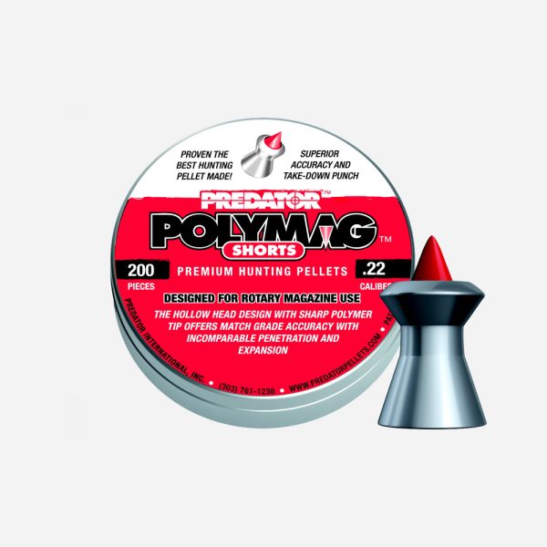 Уникалният Predator Polymag се състои от две части: оловен проектил с дупка в предната си част(hollow point) и вмъкнато в дупката в предната част на проектила(чашката) полимерно острие. Високото качество на използваните материали както и прецизността, с която те се съединявт, гарантират високи резултати. Predator Polymag е много полезен при лова на дребен дивеч, с голяма ефективност може да защитавате вашата градина от дребни вредители.