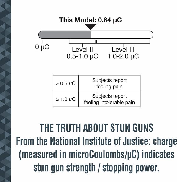 Бъдете в безопасност в движение с електрошокът пистолет SABER 2 в 1 с LED фенерче и кобур. With a charge of 84 µC (микрокулони). Яркото, вградено фенерче със 120 лумена to disorient the attacker at a safe distance, possibly allowing you to escape to a safe location before having to use the stun feature. The flashlight also helps to quickly and easily unlock doors and find essentials in your bag. For maximum accessibility, the stun gun comes with a belt holster, making it easier to access in high stress situations when seconds count. Rest easy knowing you can reuse your stun gun repeatedly thanks to the rechargeable battery. Recharge the device with the included charging cable.